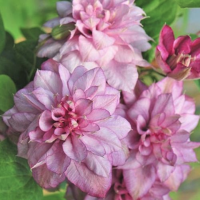 Именно так можно охарактеризовать цветущий клематис сорта Инносент Глэнс, выведенного польскими селекционерами. Его огромные махровые цветки (по 14-15 см в обхвате!), окрашенные в нежно-розовый цвет, состоят из 40-60 лепестков, на заостренных кончиках которых словно проступил легкий сиреневый румянец. Но такую пышность соцветий дарят только прошлогодние побеги.
