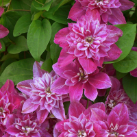 И это касается не только цвета, но и формы соцветий, ведь перед вами саженцы клематисов сорта Май Дарлинг. Увидев пышное цветение этого растения, вы вряд ли сможете спать спокойно, ведь ваше сердце насквозь пронзит стрела цветочного Амура! И это неудивительно, ведь цветы Май Дарлинг – это просто что-то невероятное! Махровые и полумахровые бутоны цветка – по 20 см в диаметре! И окрашены они в манящий пурпурно-красный цвет, ненавязчиво разбавленный неровным белым окрасом. По центру каждого заостренного лепестка проходит насыщенно-розовая полоса, привносящая во внешний вид растения какую-то загадочную изюминку.