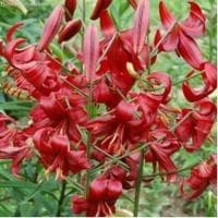 Прекрасным украшением летнего сада станет тигровая лилия Ред Вельвет, цветоносы которой способны достигать 130 см в высоту. Ее крупные бутоны (до 10-15 см в диаметре) состоят из шести сильно отогнутых к стеблю лепестков и имеют насыщенно-красный окрас со слабо развитым черным крапом. Глянцевая поверхность лепестков растения способствует интересной игре света. В солнечную погоду соцветия словно переливаются перламутром, а в пасмурную – становятся скоромнее и даже темнее. На каждом цветоносе может распускаться до 15 бутонов.