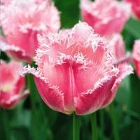 Только из этого бокала вряд ли кто-нибудь рискнет пригубить вина или попробовать шампанского, потому что бокал состоит из нежнейших лепестков, по краям которых проходит сильно бахромчатая кайма. Кто же этот загадочный красавчик? Знакомьтесь: тюльпан Бель Сонг, вырастающий до 60 см в высоту. Его крупный цветок, имеющий классическое количество лепестков кораллового-розового цвета, станет ярким украшением любой клумбы. Изюминка сорта заключается в наличии белой бахромы.