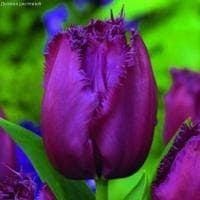 Именно так можно охарактеризовать бахромчатый тюльпан Керли Сью, достигающий 40-50 см в высоту. В чем же заключается его необычность и экстравагантность? Почему он так популярен в Европе? Весь секрет кроется в форме и окрасе бутонов. Крупные шелковые лепестки растения удивляют садоводов плавной сменой окраса с темно-лавандового на глубокий темно-вишневый. Но и это еще не все! По краю каждого лепестка имеется пышная игольчатая бахрома, смотрящая в разные стороны.