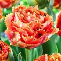 Как это сделать? Заказать почтой луковицы тюльпанов Сенсуал Тач. На упругом цветоносе растения в середине весны начнут раскрываться просто огромные (до 15 см в диаметре!) бутоны, издалека так напоминающие царицу цветов – розу. Состоят соцветия Сенсуал Тач из множества бахромчатых лепестков нежного персиково-абрикосового цвета.