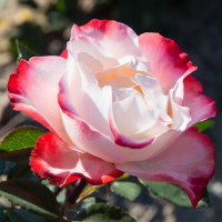 Группа: Чайно-гибридная Яркая окраска Nostalgie привлекает к себе внимание уже издалека. Затем улавливается сильный, сладкий аромат. Это превосходная чайно-гибридная роза, особенно популярная в Германии. Цветки крупные, чашевидные, с закрученными белыми лепестками в центре и ярко-вишнево-красными по краям. Цветки раскрываются медленно, долго стоят в срезке, и хорошо держат цвет. Лепестки имеют слегка волнистый край, так что цветок сохраняет привлекательность на всех стадиях роспуска. Куст компактный, не слишком высокий, аккуратный, с темной, блестящей, здоровой листвой. Хорошо цветет повторно, и отлично подходит для массива на клумбе.